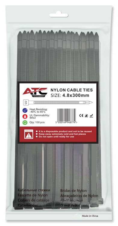 Ανθεκτικά δεματικά από νάιλον, 4.8x300mm, ιδανικά για στερέωση καλωδίων και οργάνωση καλωδίωσης. Διατίθενται σε πρακτική συσκευασία 100 τεμαχίων για εύκολη χρήση και αποθήκευση.